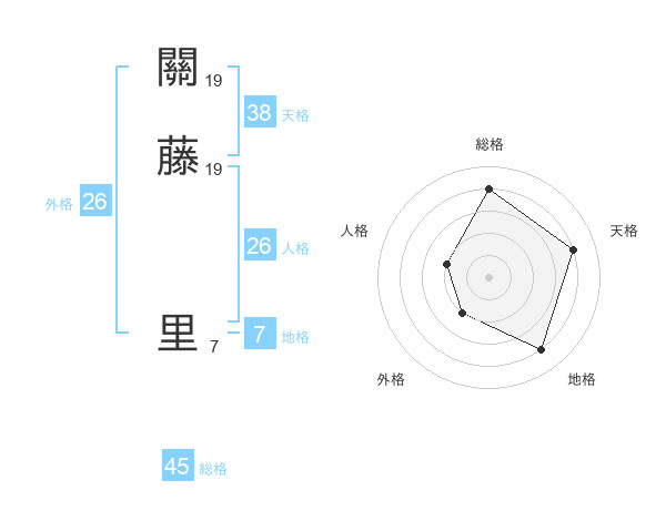 關藤 里さんの総格は45画の4点!