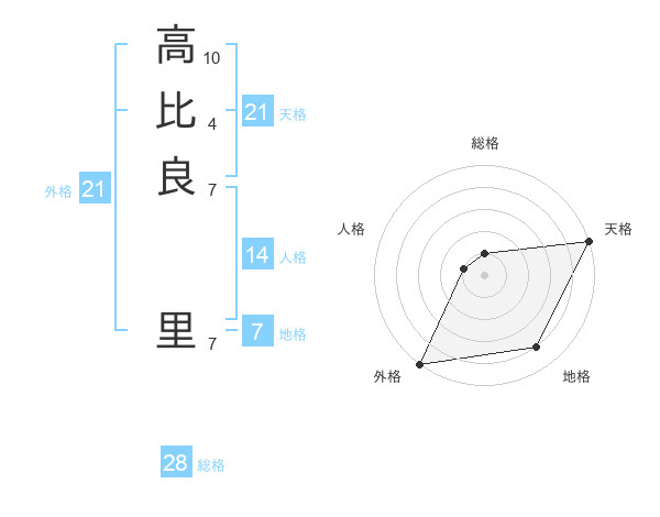 高比良 里さんの天格は21画の5点!