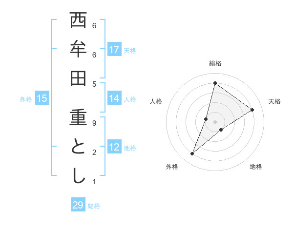 西牟田 重としさんを姓名の画数から五運を鑑定