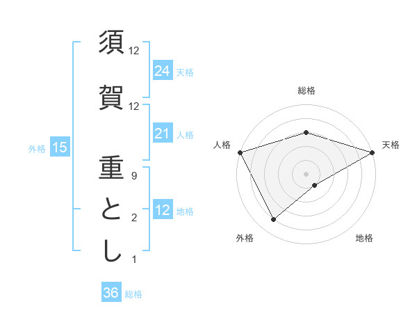 須賀 重としさんの地格は12画の1点