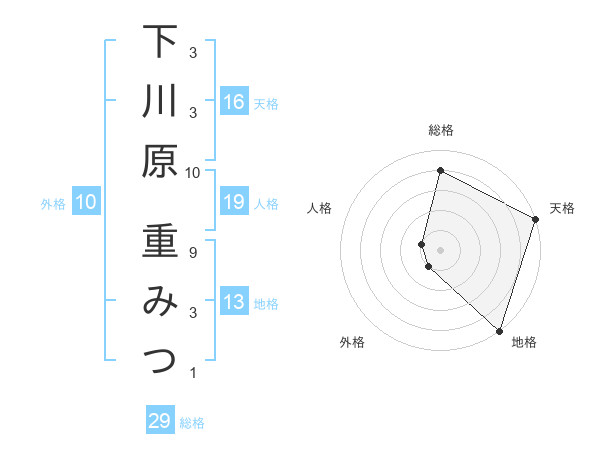 下川原 重みつさんの総格は29画の4点!