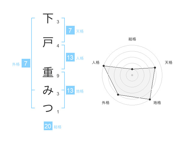 下戸 重みつさんを姓名の画数から五運を鑑定