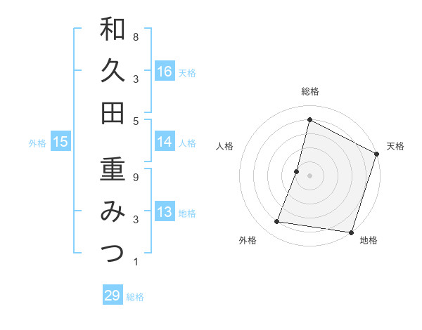 和久田 重みつさんを姓名の画数から五運を鑑定