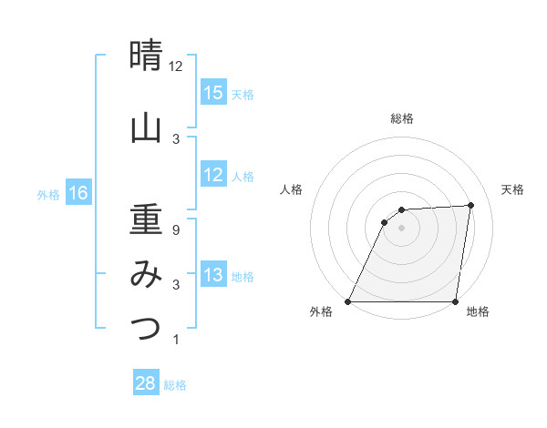 晴山 重みつさんを姓名の画数から五運を鑑定