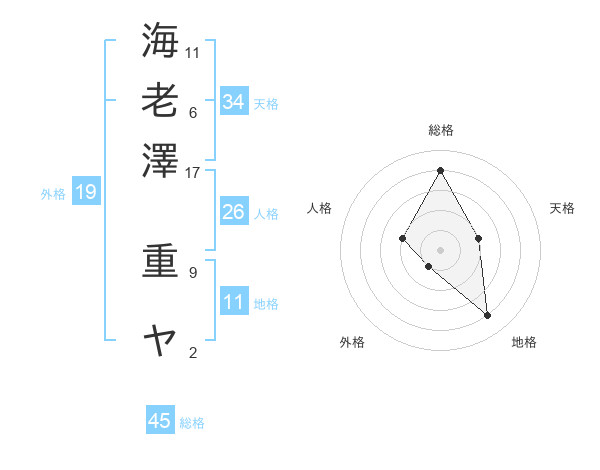 海老澤 重ヤさんを姓名の画数から五運を鑑定