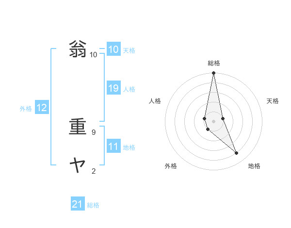 翁 重ヤさんの総格は21画の5点!