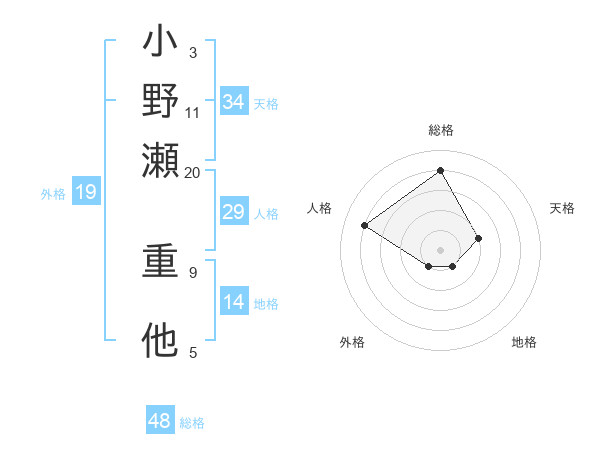 小野瀬 重他さんを姓名の画数から五運を鑑定