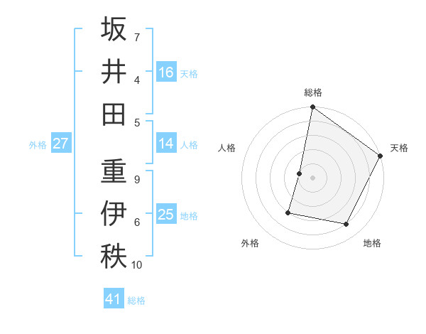 坂井田 重伊秩さんを姓名の画数から五運を鑑定