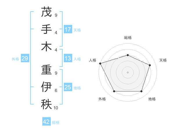 茂手木 重伊秩さんを姓名の画数から五運を鑑定