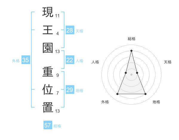 現王園 重位置さんを姓名の画数から五運を鑑定