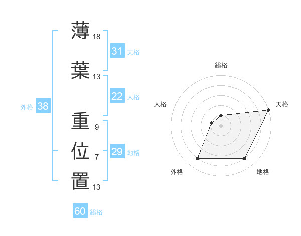薄葉 重位置さんを姓名の画数から五運を鑑定