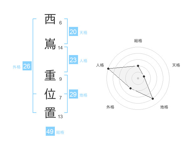 西嶌 重位置さんを姓名の画数から五運を鑑定