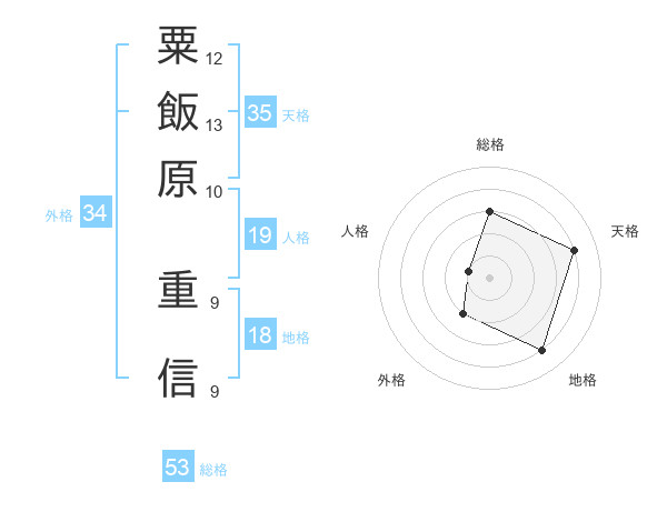 粟飯原 重信さんの総格は53画の3点!
