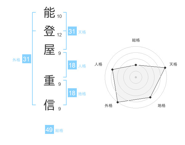 能登屋 重信さんを姓名の画数から五運を鑑定