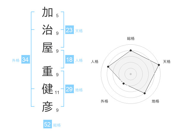 加治屋 重健彦さんを姓名の画数から五運を鑑定