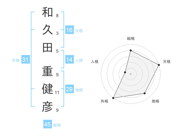 和久田 重健彦さんを姓名の画数から五運を鑑定