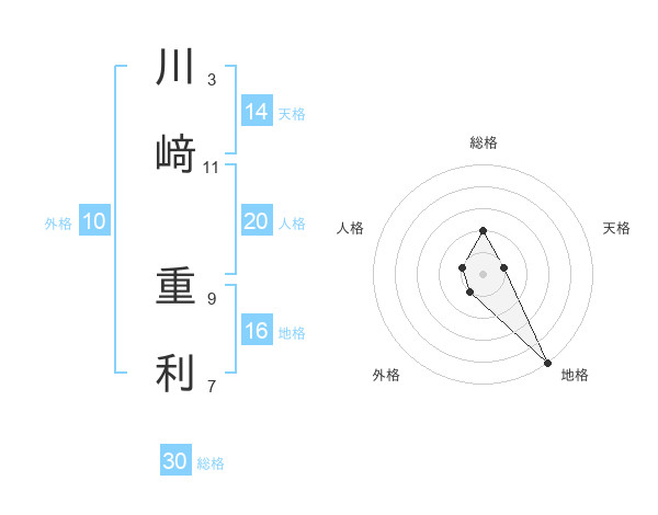 川﨑 重利さんの総格は30画の2点!