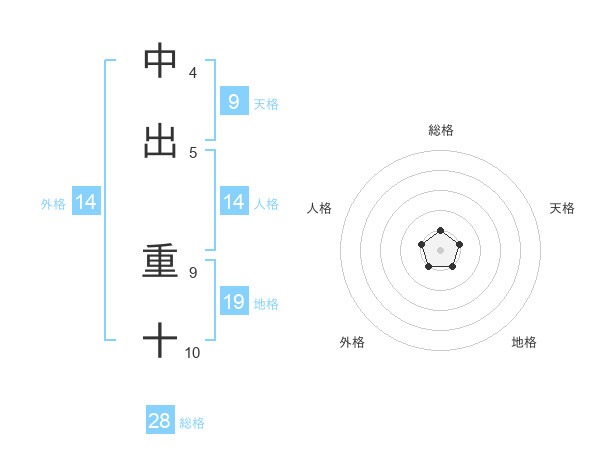 中出 重十さんの総格は28画の1点!