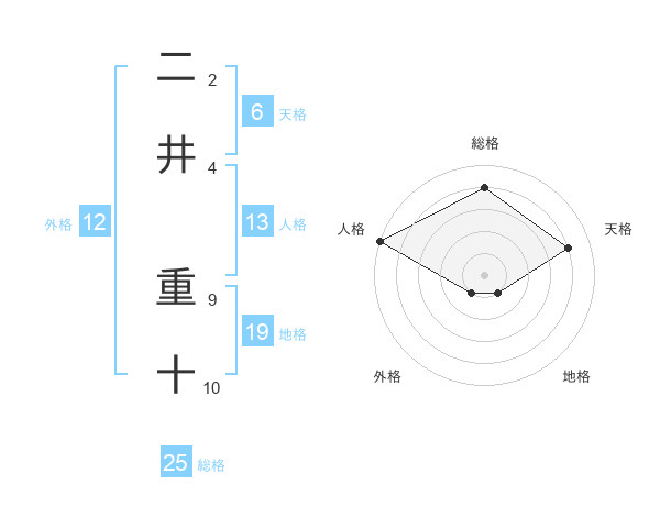 二井 重十さんの総格は25画の4点!