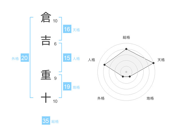 倉吉 重十さんを姓名の画数から五運を鑑定