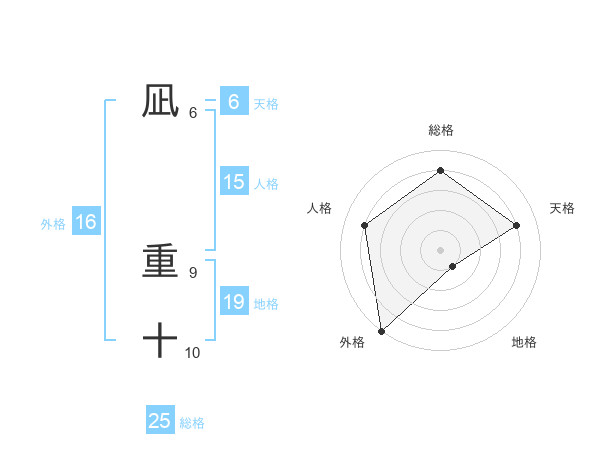凪 重十さんの外格は16画の5点!