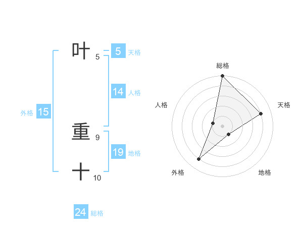 叶 重十さんの総格は24画の5点!