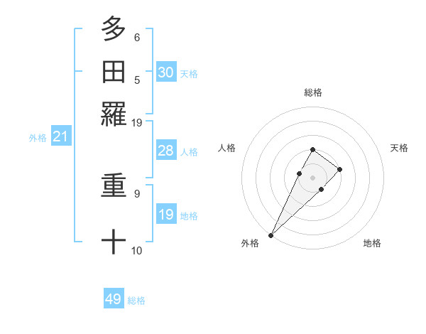 多田羅 重十さんを姓名の画数から五運を鑑定