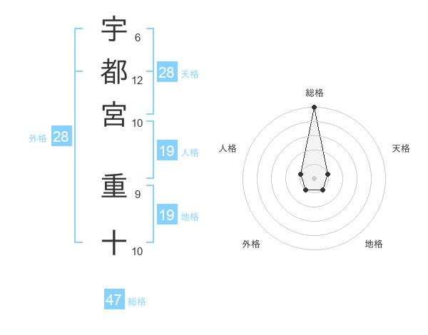 宇都宮 重十さんを姓名の画数から五運を鑑定