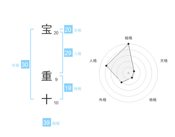 宝 重十さんの総格は39画の5点!