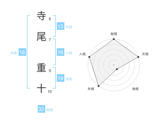 寺尾 重十さんを姓名の画数から五運を鑑定