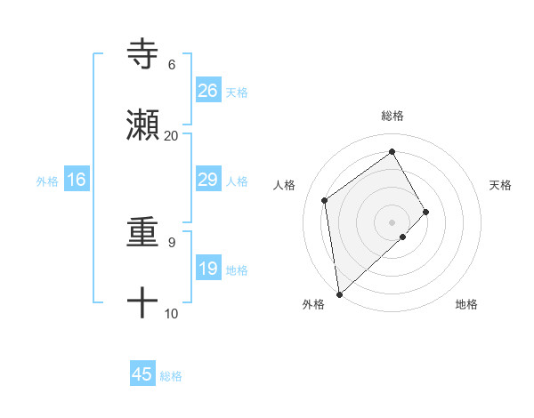 寺瀬 重十さんを姓名の画数から五運を鑑定