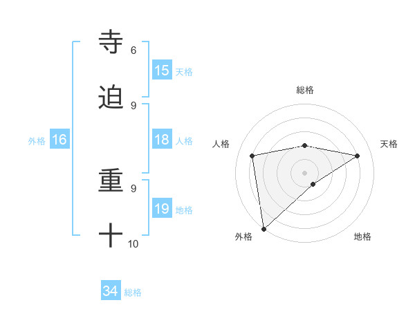 寺迫 重十さんの外格は16画の5点!