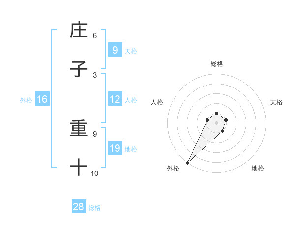 庄子 重十さんの外格は16画の5点!