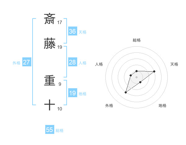 斎藤 重十さんを姓名の画数から五運を鑑定