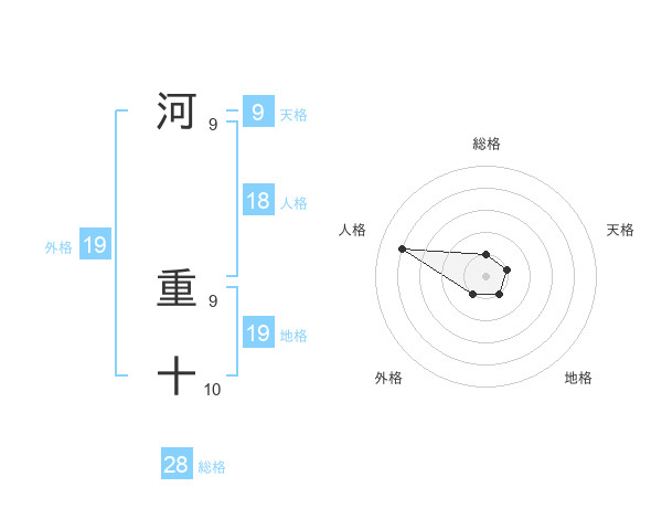 河 重十さんの外格は19画の1点!