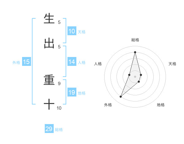 生出 重十さんの総格は29画の4点!