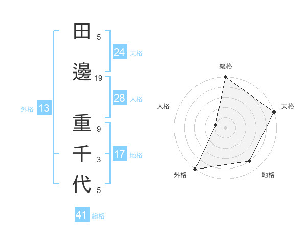 田邊 重千代さんを姓名の画数から五運を鑑定