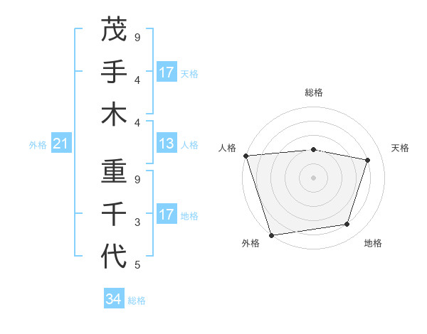 茂手木 重千代さんの地格は17画の4点!