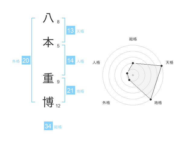 八本 重博さんの天格は13画の5点!