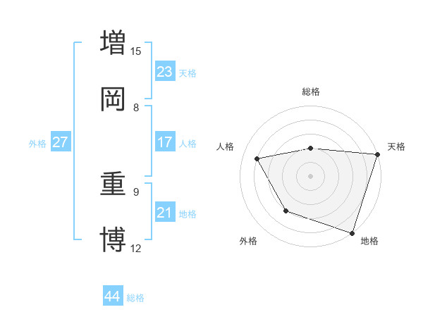 増岡 重博さんの天格は23画の5点!