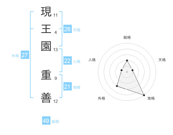 現王園 重善さんの総格は49画の2点!