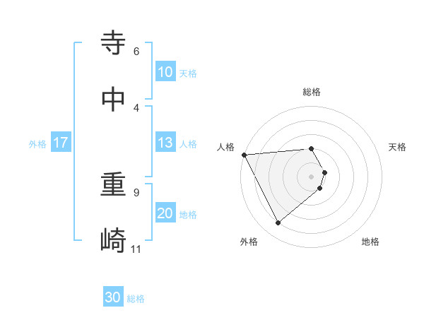 寺中 重崎さんの総格は30画の2点!