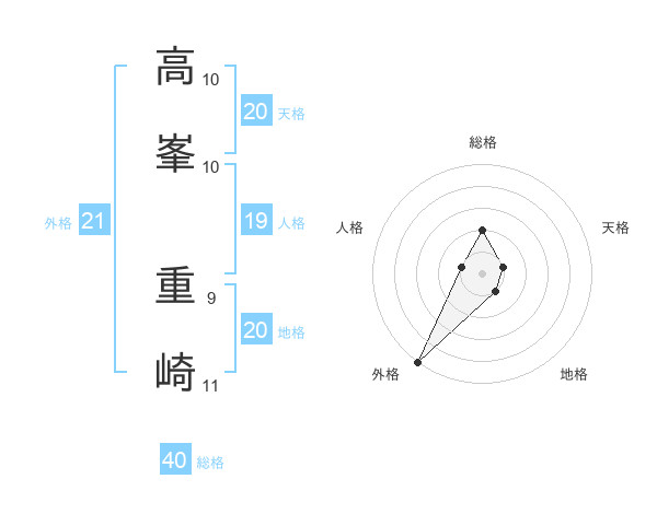 高峯 重崎さんを姓名の画数から五運を鑑定