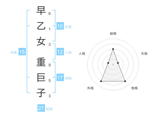 早乙女 重巨子さんの総格は27画の3点!