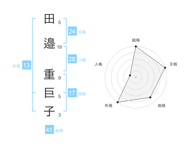 田邉 重巨子さんを姓名の画数から五運を鑑定