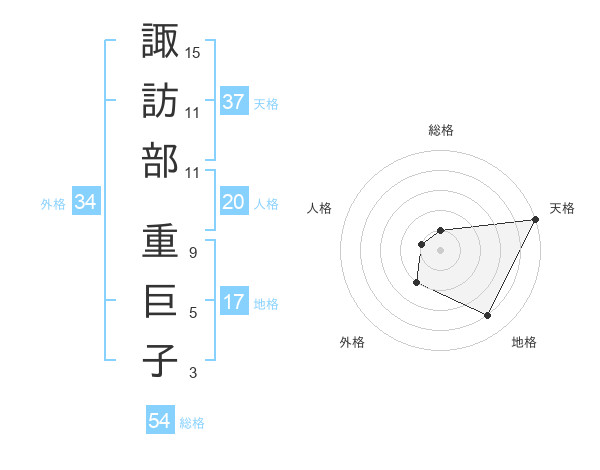 諏訪部 重巨子さんの天格は37画の5点