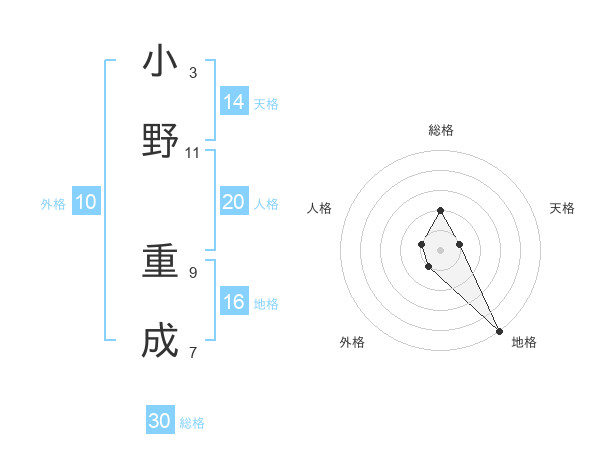 小野 重成さんの総格は30画の2点!