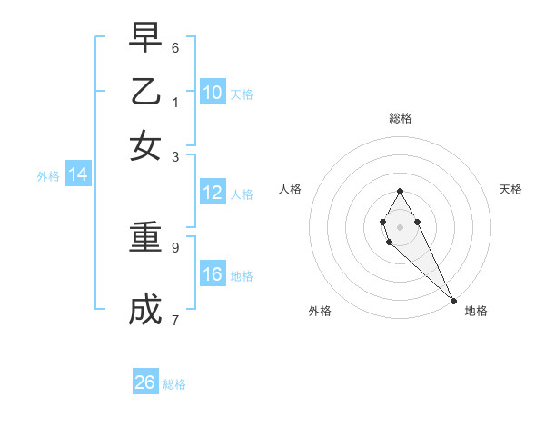 早乙女 重成さんを姓名の画数から五運を鑑定