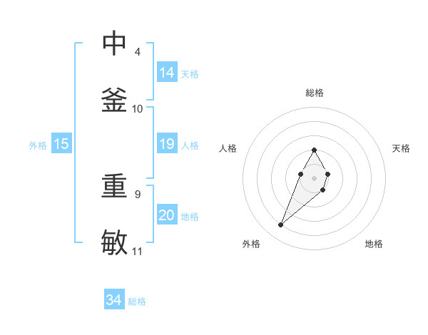 中釜 重敏さんの総格は34画の2点!