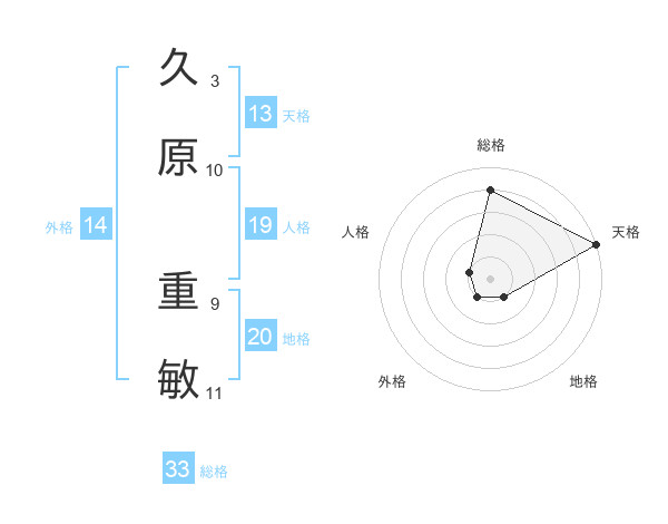 久原 重敏さんの天格は13画の5点!